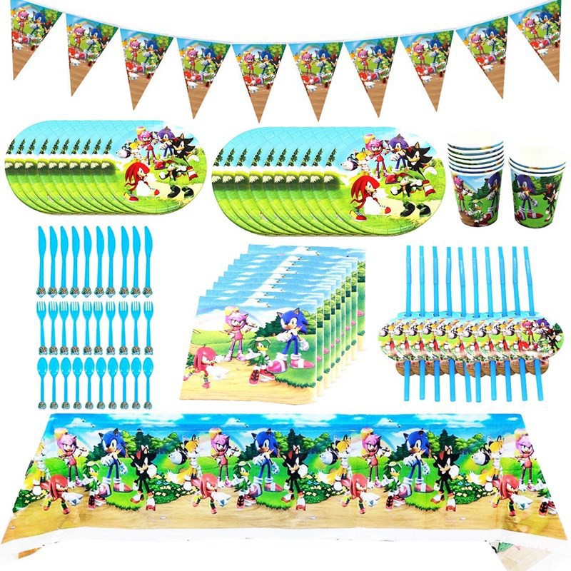 10 dao ,10 dĩa,10 thìa ,1 khăn trải bàn , 10 cốc giấy, 10 đĩa giấy, 10.ống hút, Mũ In hình,