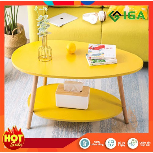 Bàn trà bắc âu hình trứng 2 tầng có kệ để đồ GP56 thương hiệu IGA