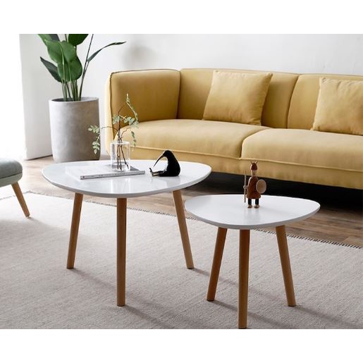Giới thiệu Bàn trà, bàn sofa hình ovan tam giác bo các góc bệt chân gỗ tự nhiên phòng khách, phòng ngủ