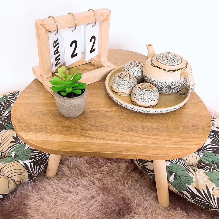 Giới thiệu Bàn trà bệt FREESHIPBàn ngồi bệt gỗ mặt oval mini đường kính 40cm kiểu dáng hiện đại, decor không gian sống cực xinh