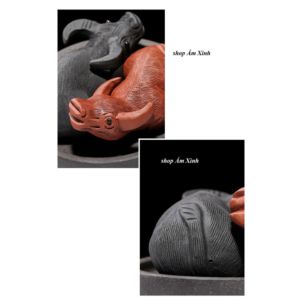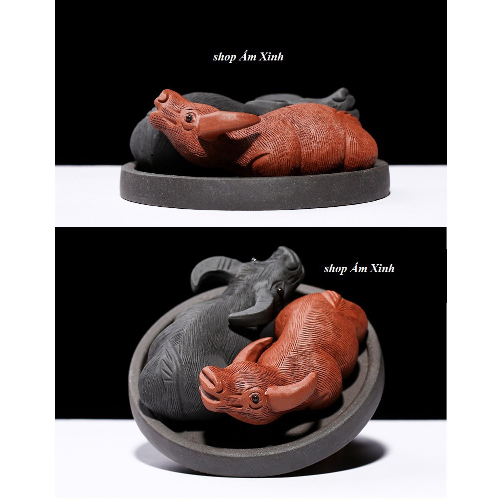 Đồ chơi bàn trà Cặp song ngưu phong thuỷ– Chất liệu: Tử Sa