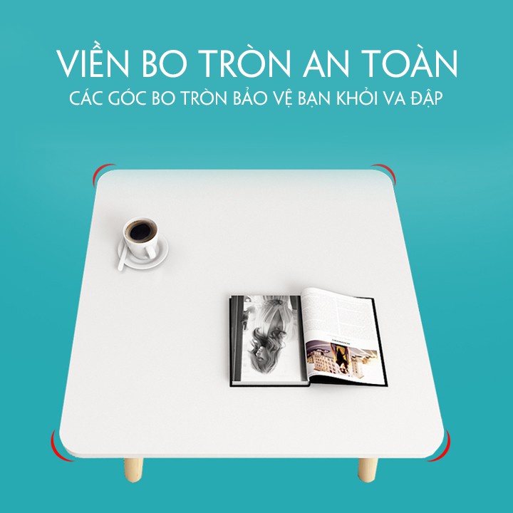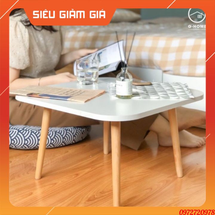 Bàn Trà chân gỗ tròn -bàn trà kiểu nhật-bàn trà decor bền bỉ chắc chắn kích thước vuông 60*60cm