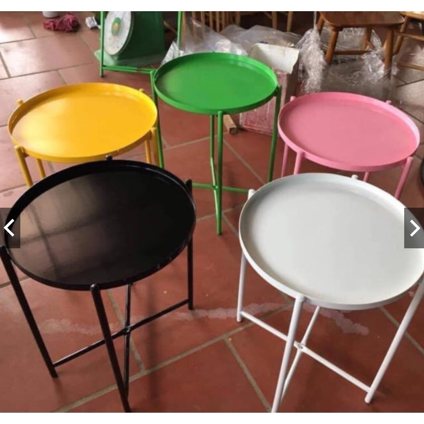🌟 Bàn trà chanh chất liệu sơn tĩnh điện chống gỉ có màu : đen, trắng, vàng,xanh lá, xanh bộ đội,...☘️ Cao 50cm, đường kính bàn 46, đường kính mâm 42,5