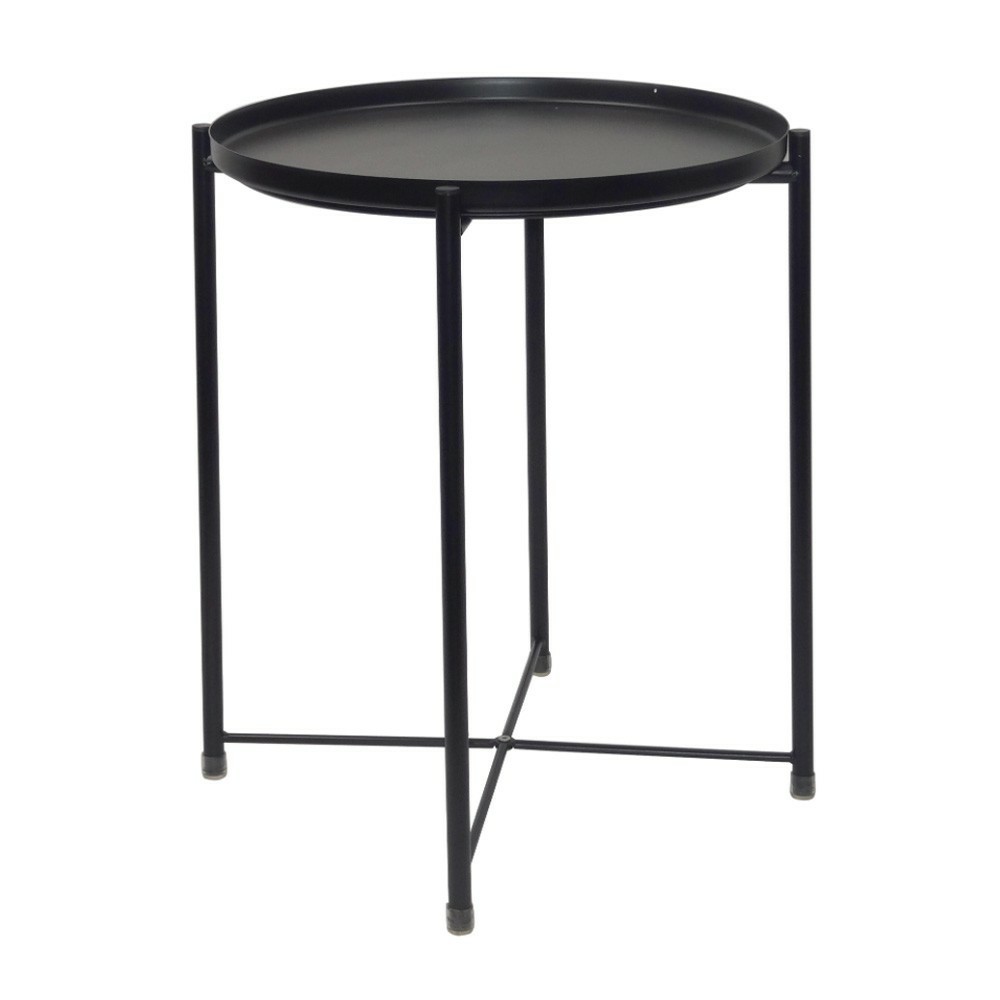 Bàn caffe sử dung khung sắt, bàn cao 52cm và mặt bàn dạng khay đĩa sắt tròn đường kính 42cm.