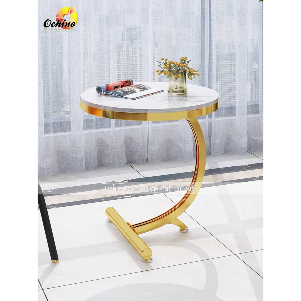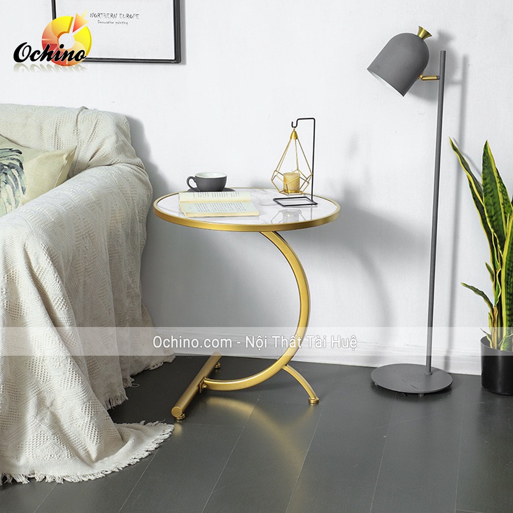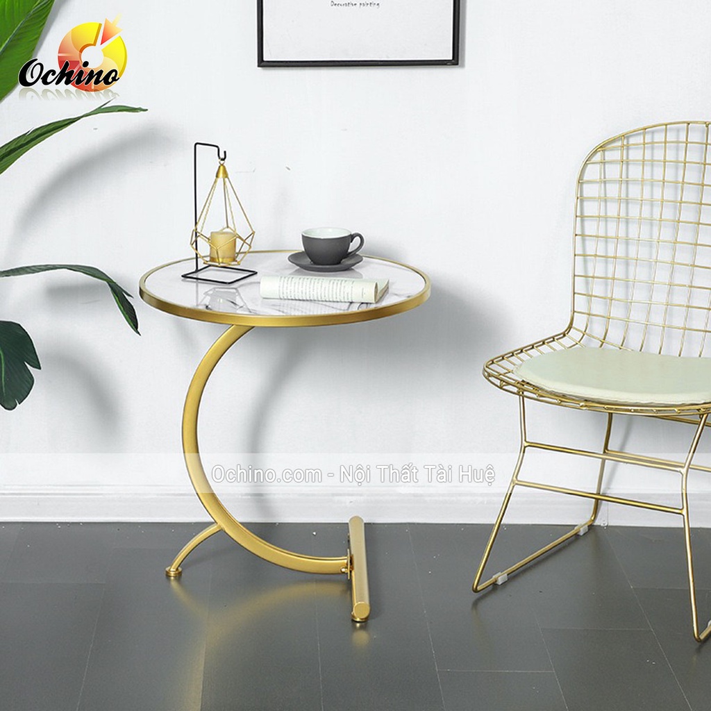Bàn Trà Cong Trang Trí Góc Sofa Mặt Đá Tròn Khung Kim Loại Sơn Tĩnh Điện Trang Trí Phòng Khách ( Hình Thật Shop Chụp)