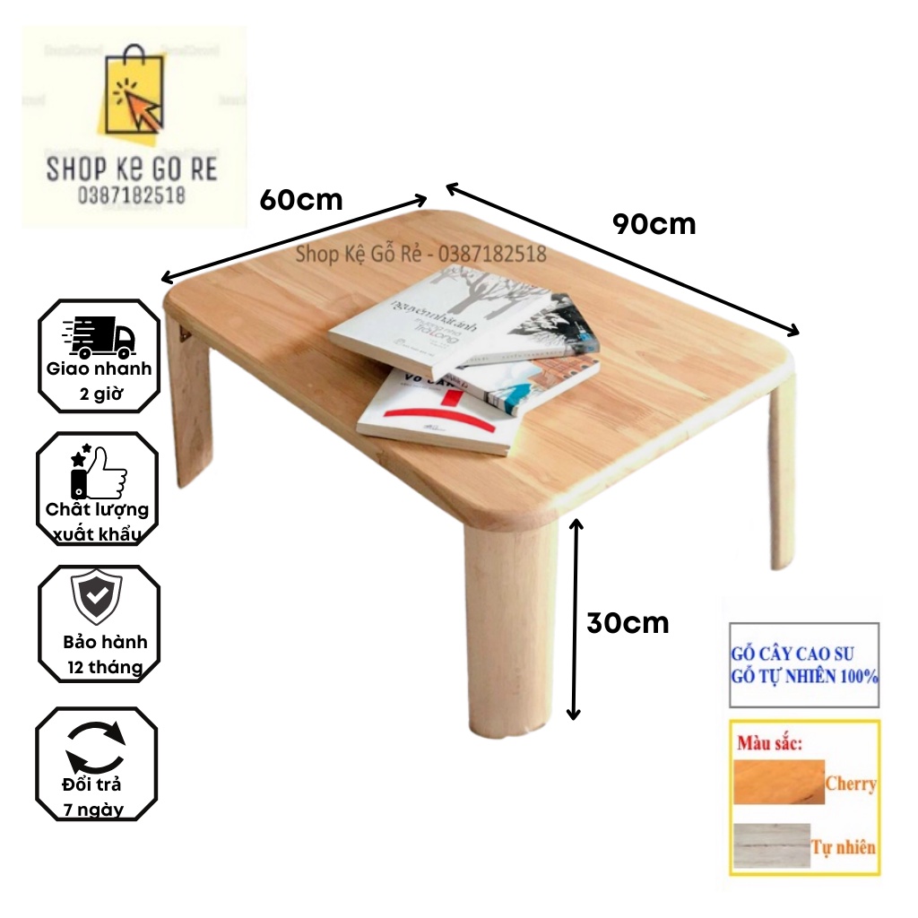 Bàn trà ngồi bệt gỗ cao su, chân bánh mỳ kiểu nhật có thể gấp gọn- Bắt nguồn từ phong cách nội thất của đất nước Nhật Bản nên bàn mang lại cảm giác thân thiện kèm nhiều tiện ích cùng kích thước nhỏ gọn thuận tiện cho việc di chuyển.