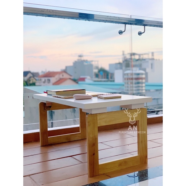Nhà cửa & Đời sống > Nội thất > Bàn || Bàn trà gỗ thông kiểu dáng Nhật Bản đẹp, vững chắc, phối màu gỗ và trắngCòn hàng