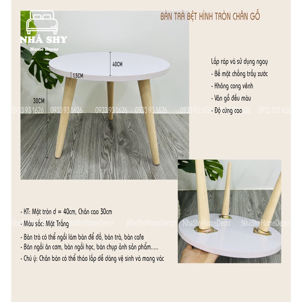 Nhà cửa & Đời sống > Nội thất > Bàn || Bàn Trà hình tròn chân gỗ ngồi bệt - bàn trà sofa màu trắng đường kính 40cmCòn hàng