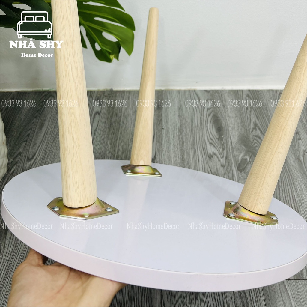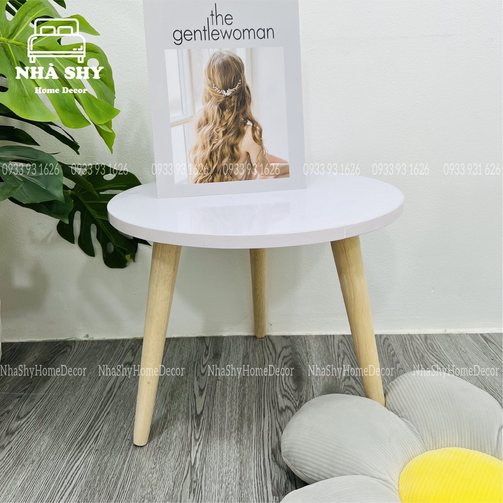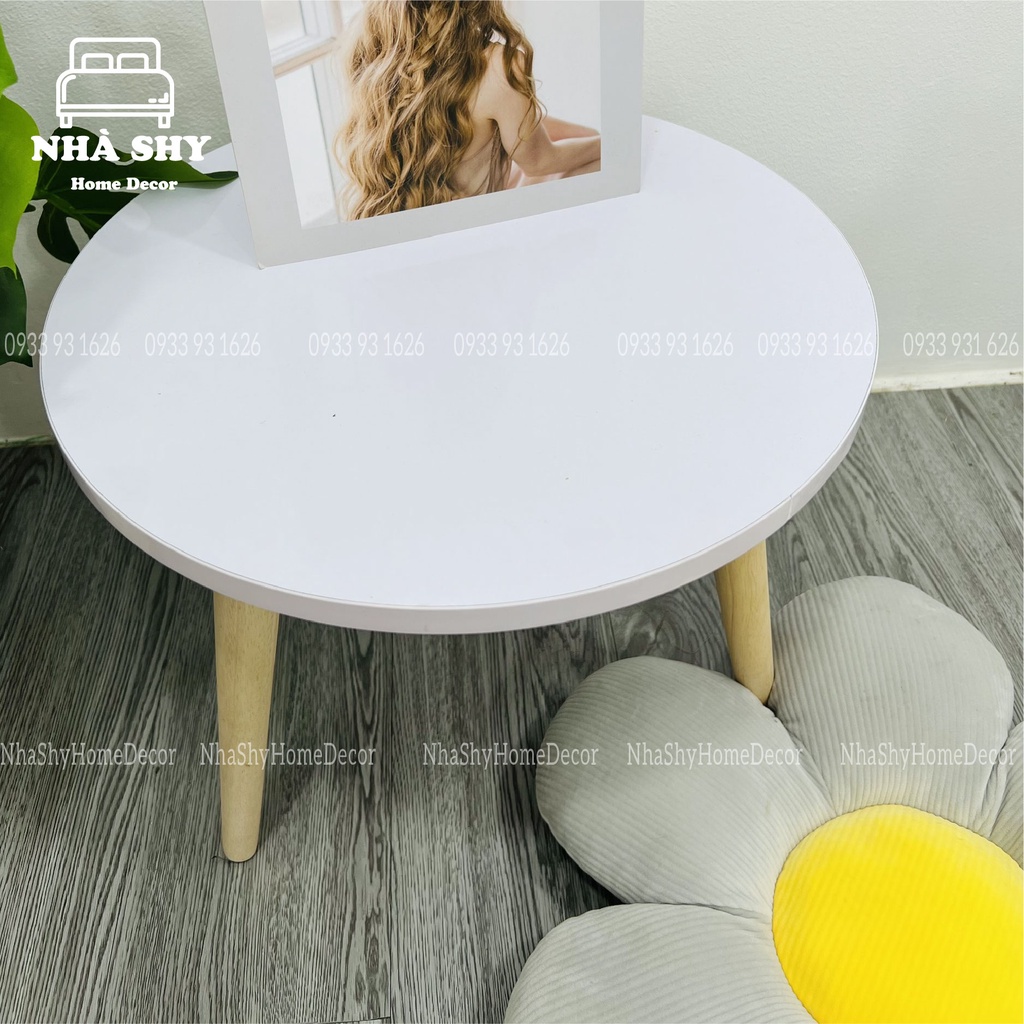 ♻️ NHÀ SHY - HOME DECOR ♻️💓 BÀN GỖ TRÒN NGỒI BỆT - BÀN TRÒN MÀU TRẮNG CHÂN GỖ
