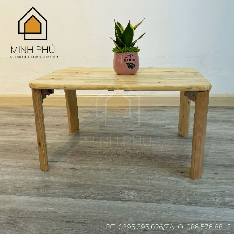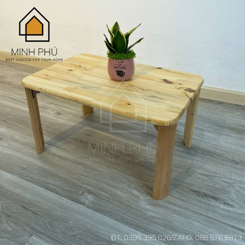 Bàn Trà Kiểu Nhật Ngồi Bệt Gấp Gọn Dày 18mm, Bàn Trà Sofa Mặt Gỗ Tự Nhiên Chân Bánh Mỳ Kích Thước 70*50 cm🔰CAM KẾT: 100% gỗ Thông tự nhiên, thân thiện với môi trường, bảo vệ sức khỏe nâng tầm chất lượng cuộc sống.