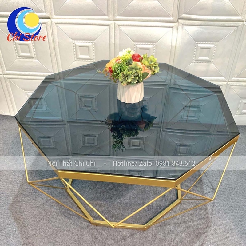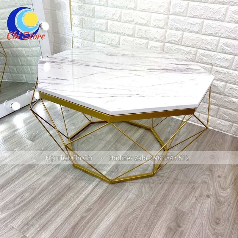 Giới thiệu Ban Trà Kim Cương Mặt Đá Khung Kim Loại Mạ Vàng Gold, Bàn Trà Phòng Khách
