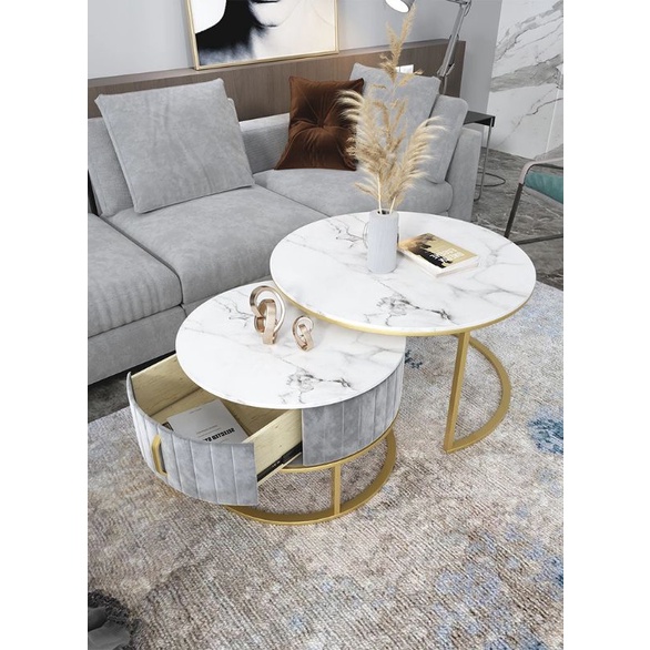 Bàn Trà Sofa - Cặp tròn, Bọc Da, Nỉ| Nội Thất Phòng Khách, Phong Cách Bắc Âu