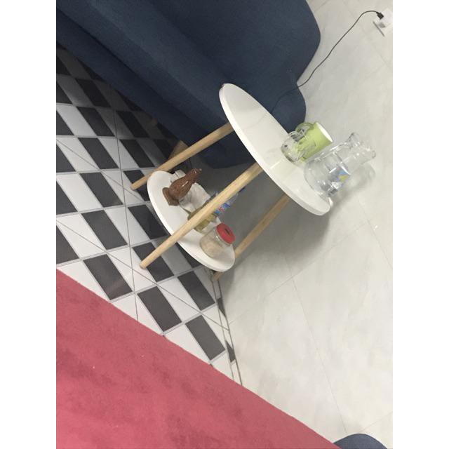 Bàn trà sofa chân gỗ sồi 2 tầng màu trắng chân cao 49cm phù hợp ngồi bệt sofa - gp54Kích thước: Mặt bàn rộng 50cm -45cm chân cao 49cm.