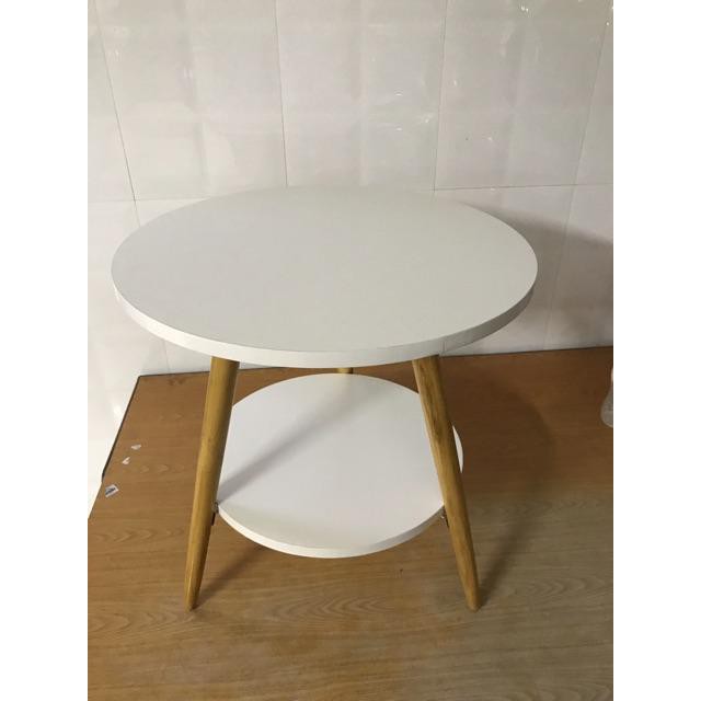 Bàn trà sofa chân gỗ sồi 2 tầng màu trắng chân cao 49cm phù hợp ngồi bệt sofa - gp54Kích thước: Mặt bàn rộng 50cm -45cm chân cao 49cm.
