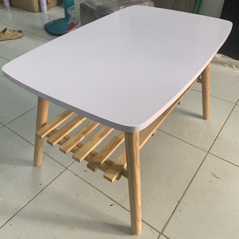 bàn trà sofa gỗ chữ nhật có kệ tiện lợi hiện đại chống thấm ẩm ướt cao cấp Trường Mai Sài GònBàn trà gỗ hình chữ nhật chân gỗ cao 42cm tháo lắp nhanh. Có thể gấp tiện lợi