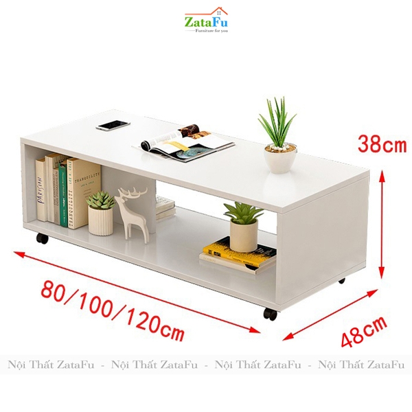 Bàn Trà Sofa Gỗ MDF Mẫu Đơn Giản Thiết Kế Bánh Xe Di Động BSF-08