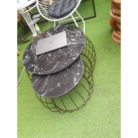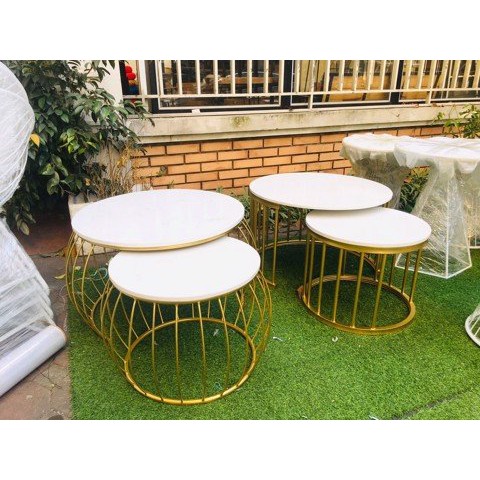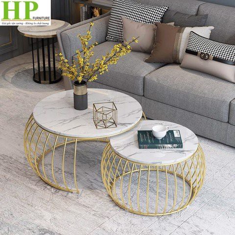 Bàn Trà Sofa - HPBTSF 03 ( Bàn cặp tròn nan cong ) - Bàn sofa mặt đá