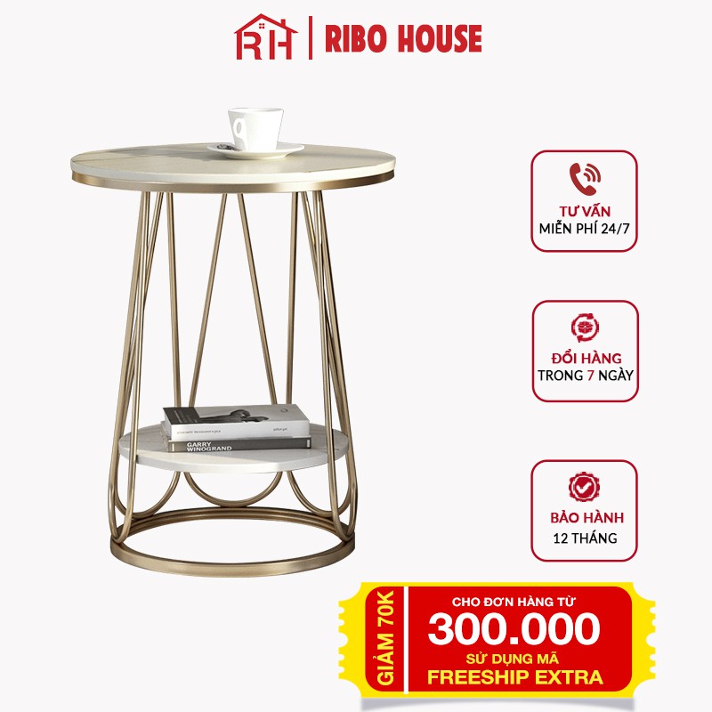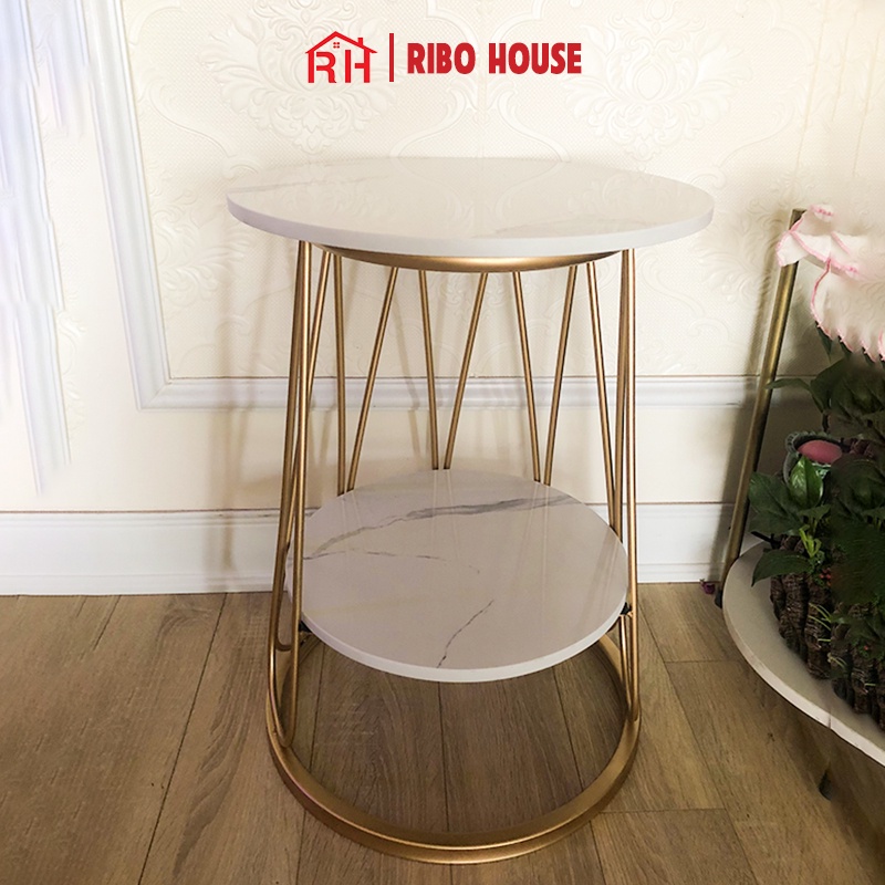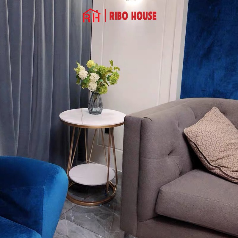 Bàn trà sofa RIBO HOUSE mặt bàn đá khung kim loại sơn tĩnh điện tab 2 tầng trang trí phòng khách ban công mẫu 7 RIBO175