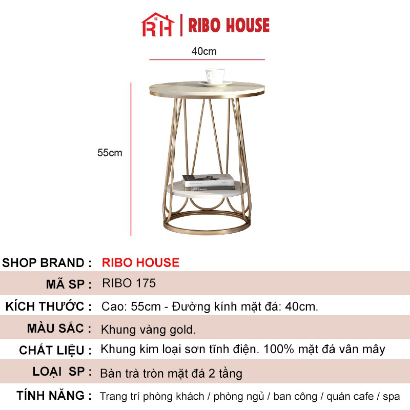 Giới thiệu Bàn trà sofa RIBO HOUSE mặt bàn đá khung kim loại sơn tĩnh điện tab 2 tầng trang trí phòng khách ban công mẫu 7 RIBO175