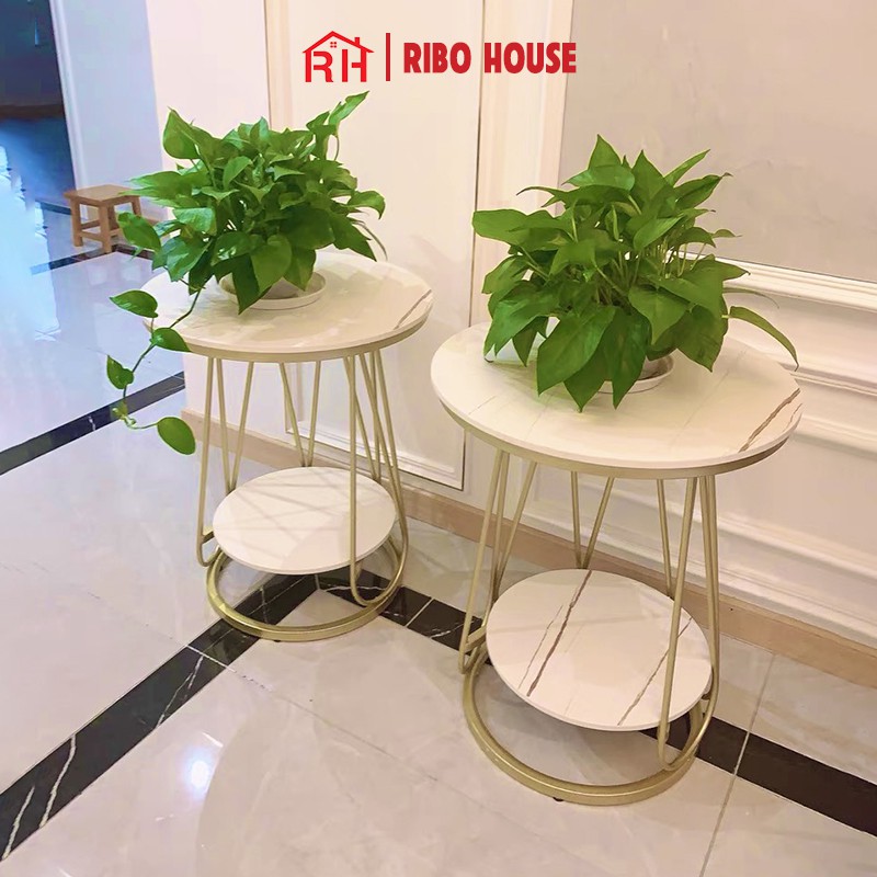 Nhà cửa & Đời sống > Nội thất > Bàn || Bàn trà sofa RIBO HOUSE mặt bàn đá khung kim loại sơn tĩnh điện tab 2 tầng trang trí phòng khách ban công mẫu 7 RIBO175Còn hàng