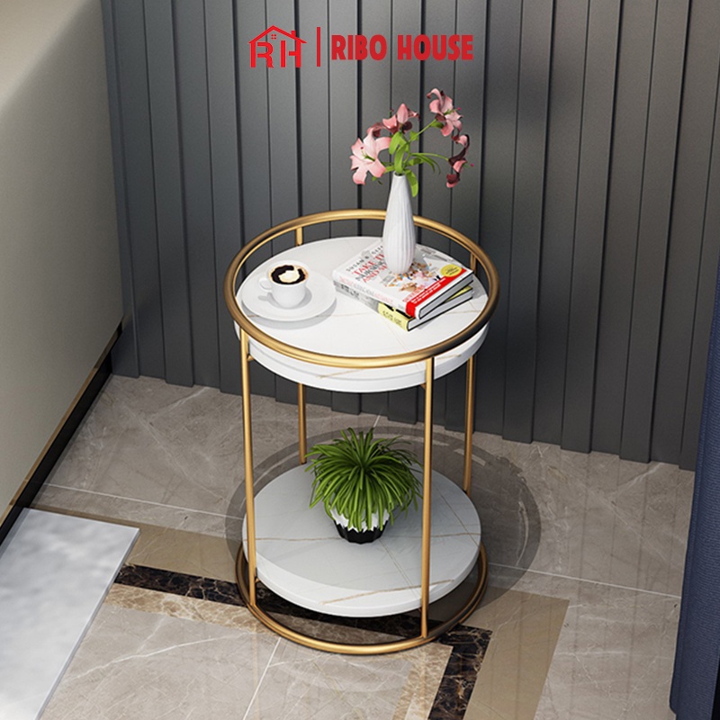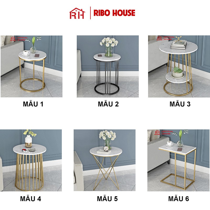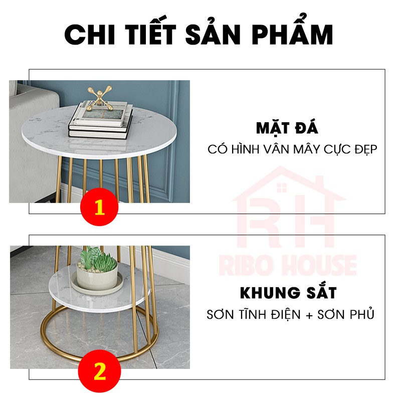 Bàn trà sofa RIBO HOUSE mặt đá tròn hình vân mây khung kim loại sơn tĩnh điện nội thất phòng khách cafe ban công RIBO50