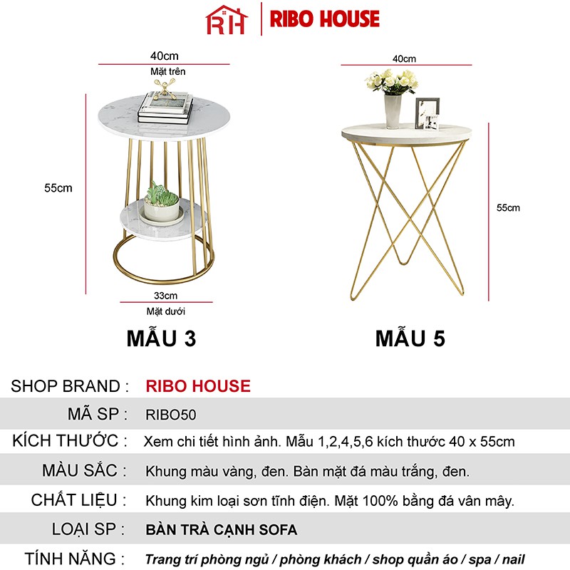 Giới thiệu Bàn trà sofa RIBO HOUSE mặt đá tròn hình vân mây khung kim loại sơn tĩnh điện nội thất phòng khách cafe ban công RIBO50