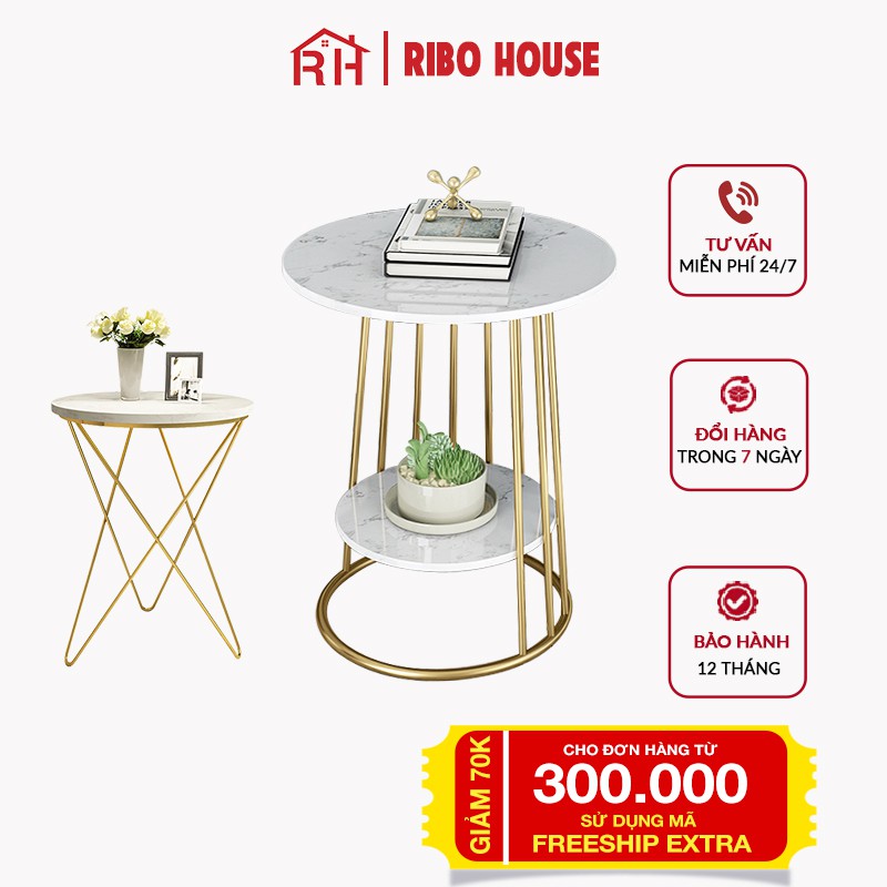 Nhà cửa & Đời sống > Nội thất > Bàn || Bàn trà sofa RIBO HOUSE mặt đá tròn hình vân mây khung kim loại sơn tĩnh điện nội thất phòng khách cafe ban công RIBO50Còn hàng