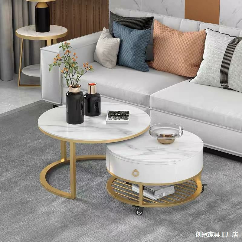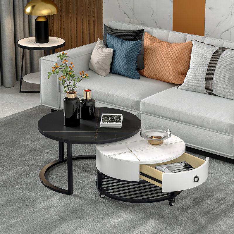 Giới thiệu Bàn Trà Tròn Đôi có bánh xe , Bàn Sofa Phòng Khách Mặt Đá Cao Cấp Decor Nhà Đẹp