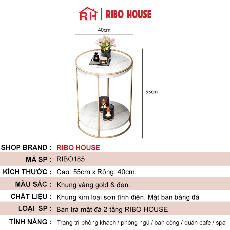 Nhà cửa & Đời sống > Nội thất > Bàn || Bàn trà tròn sofa RIBO HOUSE mặt đá 2 tầng, bàn decor phòng khách ban công tiệm nails spa salong tóc mẫu 8 RIBO185Còn hàng