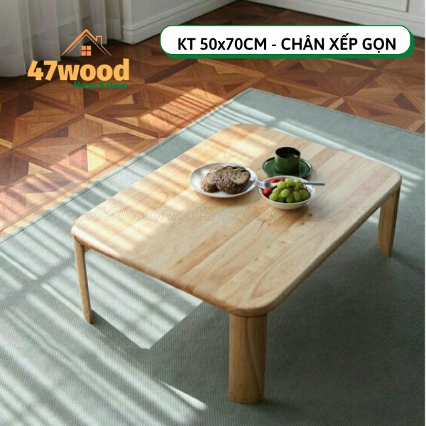 Bàn trà xếp gọn 47wood chân bánh mỳ kíc thước 50x70cm