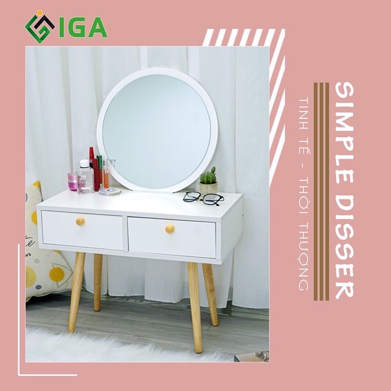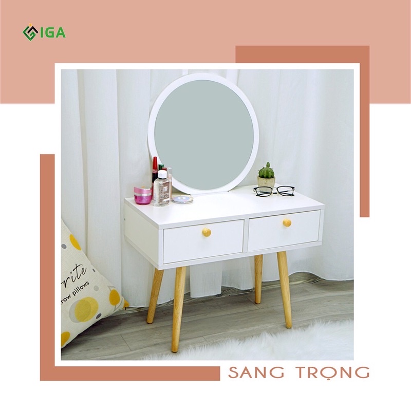 Giới thiệu bàn trang điểm bắc âu 2 ngăn kéo- bàn trang điểm ngồi bệt gương tròn GP140
