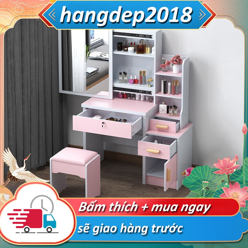 Cửa hàng cung cấp hai kiểu bàn trang điểm màu hồng và trắng để đáp ứng nhu cầu bạn muốn. Với áp dụng thiết kế sáng tạo đơn giản và phong cách, phun lớp sơn gỗ chất lượng cao và thân thiện với môi trường, tuân thủ đầy đủ các tiêu chuẩn sức khỏe và chăm sóc sức khỏe theo quy địnhTính năng của sản phẩm: 1. Bề mặt gương tráng thủy ngân sáng đẹp 2. Gương trang điểm có thể đẩy ra, phía sau là ngăn chứa đồ 3. Thiết kế tay cầm bằng gỗ chắc chắn 4. Ngăn lưu trữ đồ có giá trị ; 5. Ghế mềm kem bàn trang điểm