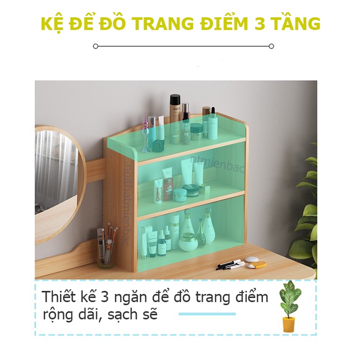 Bàn trang điểm kèm kệ để đồ chân gỗ tiện, có gương LED nhiều mẫu lựa chọn