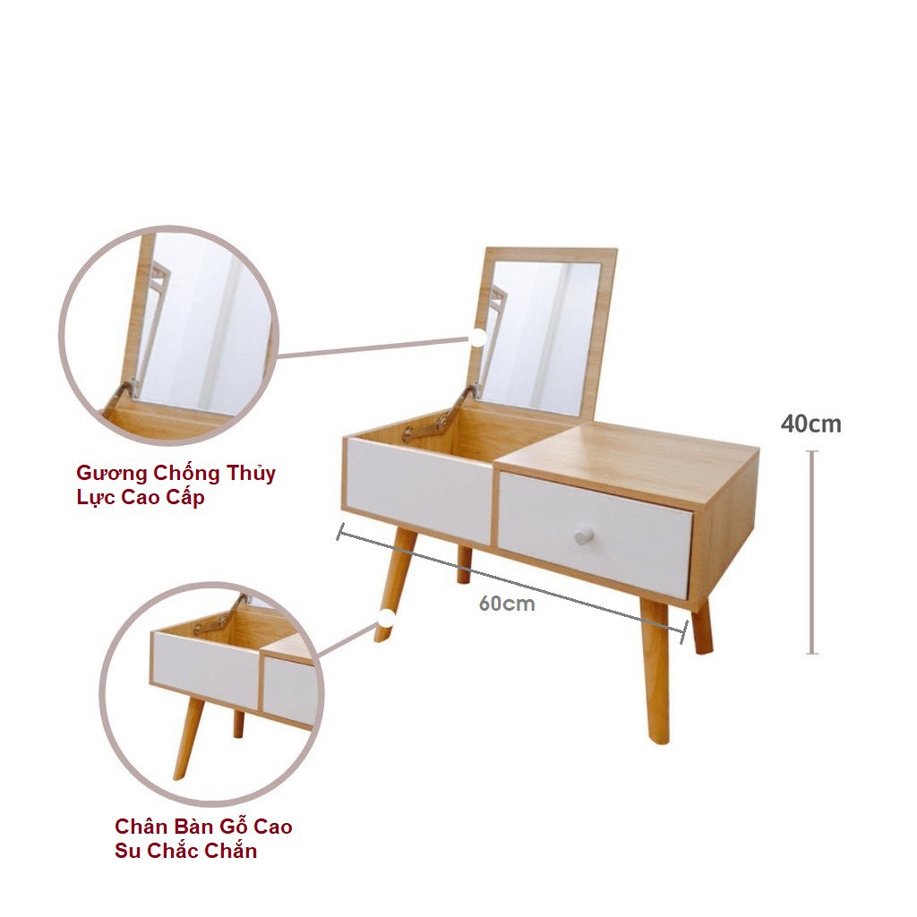 Giới thiệu Bàn Trang Điểm Bệt Mini Có Gương Gấp Gọn Gỗ MDF