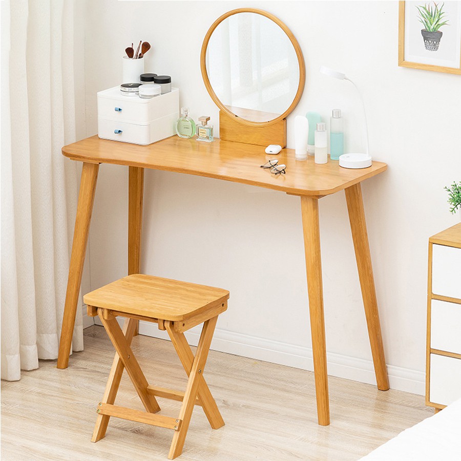 Bàn trang điểm kèm gương thông minh VANGO V27 gỗ tre tự nhiên cao cấp, siêu tiết kiệm diện tích, phong cách hiện Bắc Âu