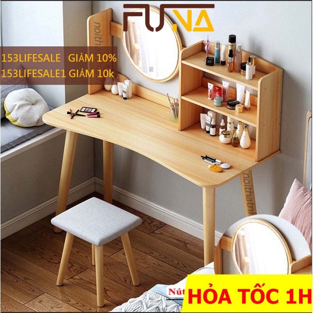 Nhà cửa & Đời sống > Nội thất > Bàn || Bàn Trang Điểm LED FUNA Có Kệ Để Đồ Tiện Lợi Chân Gỗ Tiện To 5cm Cao 73cm Cho Cô Nàng Yêu Phong Cách Bắc Âu - Mã AK01Còn hàng