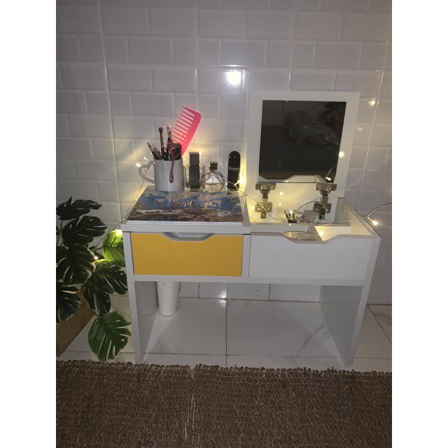 Bàn trang điểm không đơn thuần chỉ là nhu cầu mà còn là sở thích của chị em. Đâu nhất thiết phải sở hữu bộ bàn trang điểm đồ sộ, đôi khi chỉ cần một chiếc bàn trang điểm mini bệt cũng đủ để chị em chăm chút nhan sắc, biến mình trở nên xinh đẹp hơn, tự tin hơn khi bước chân xuống phố. Ngày hôm nay, hãy cùng Shop tìm hiểu về mẫu bàn trang điểm mini vô cùng dễ thương này nhé!