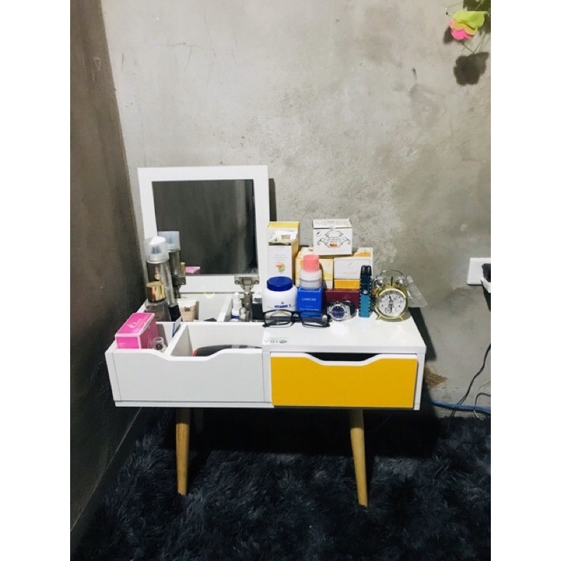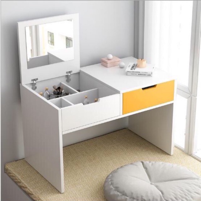 Bàn trang điểm không đơn thuần chỉ là nhu cầu mà còn là sở thích của chị em. Đâu nhất thiết phải sở hữu bộ bàn trang điểm đồ sộ, đôi khi chỉ cần một chiếc bàn trang điểm mini bệt cũng đủ để chị em chăm chút nhan sắc, biến mình trở nên xinh đẹp hơn, tự tin hơn khi bước chân xuống phố. Ngày hôm nay, hãy cùng Shop tìm hiểu về mẫu bàn trang điểm mini vô cùng dễ thương này nhé!