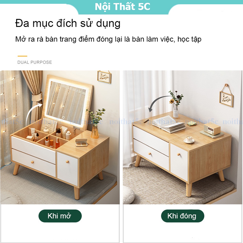 Bàn trang điểm thiết kế ngồi bệt, tích hợp đèn LED có nút cảm ứng thông minh, hộc tủ chứa đồ phù hợp cho không gian hẹpNội thất 5C chuyên cung cấp các dòng sản phẩm nội thất đẹp, được lựa chọn kỹ càng với những thiết kế độc đáo, hợp với xu hướng, hứa hẹn mang lại một không gian sống tiện nghi và có điểm nhấn cho quý khách hàng.