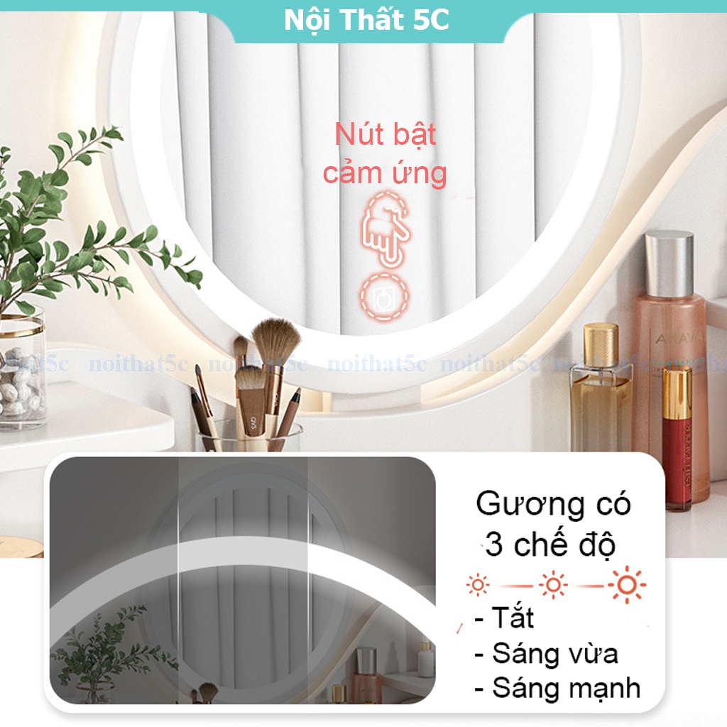Bàn trang điểm phong cách Bắc Âu thiết kế hiện đại tích hợp đèn LED cảm ứng thông minh, chất liệu gỗ cao cấp, bền bỉNội thất 5C chuyên cung cấp các dòng sản phẩm nội thất đẹp, được lựa chọn kỹ càng với những thiết kế độc đáo, hợp với xu hướng, hứa hẹn mang lại một không gian sống tiện nghi và có điểm nhấn cho quý khách hàng.