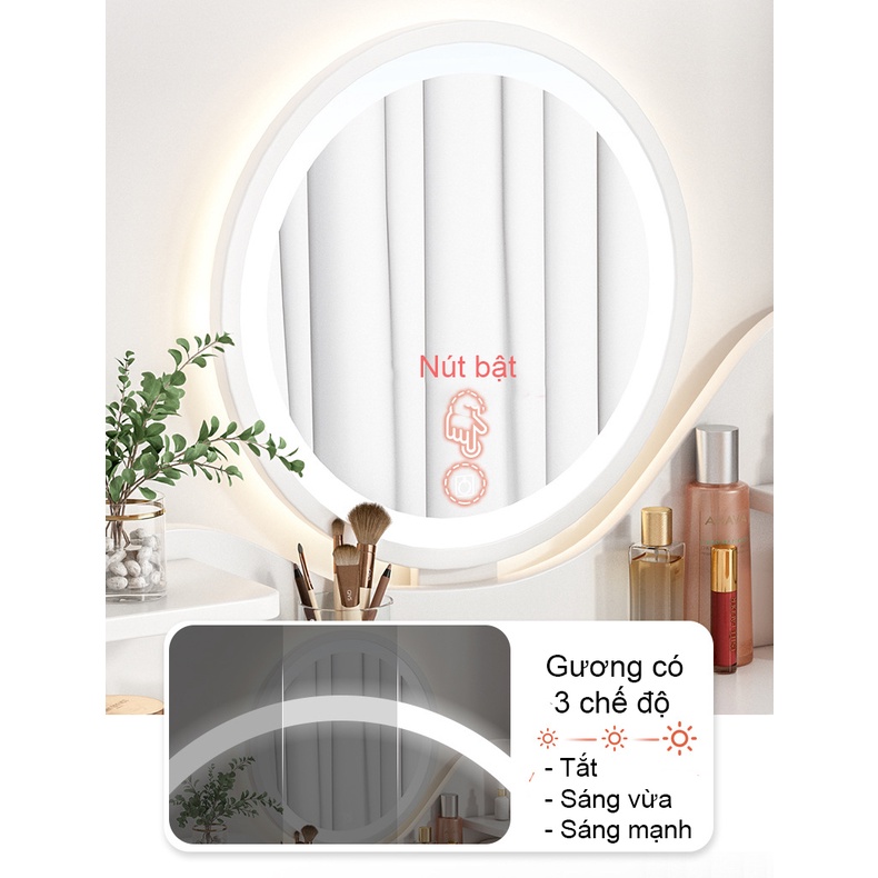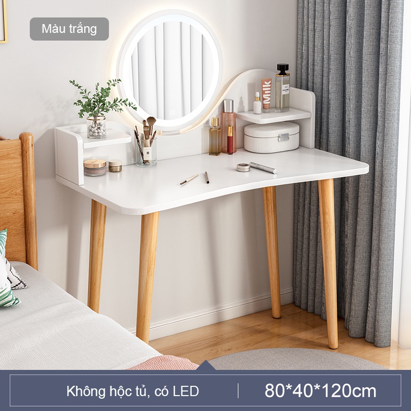 Bàn trang điểm phong cách Bắc Âu tích hợp đèn LED cảm ứng thông minh, bàn phấn thiết kế hiện đại có hộc tủ