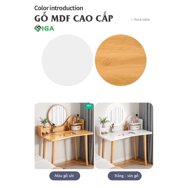 Giới thiệu Bàn trang điềm phòng ngủ bàn trang điểm gương tròn chân gỗ sồi - GP196