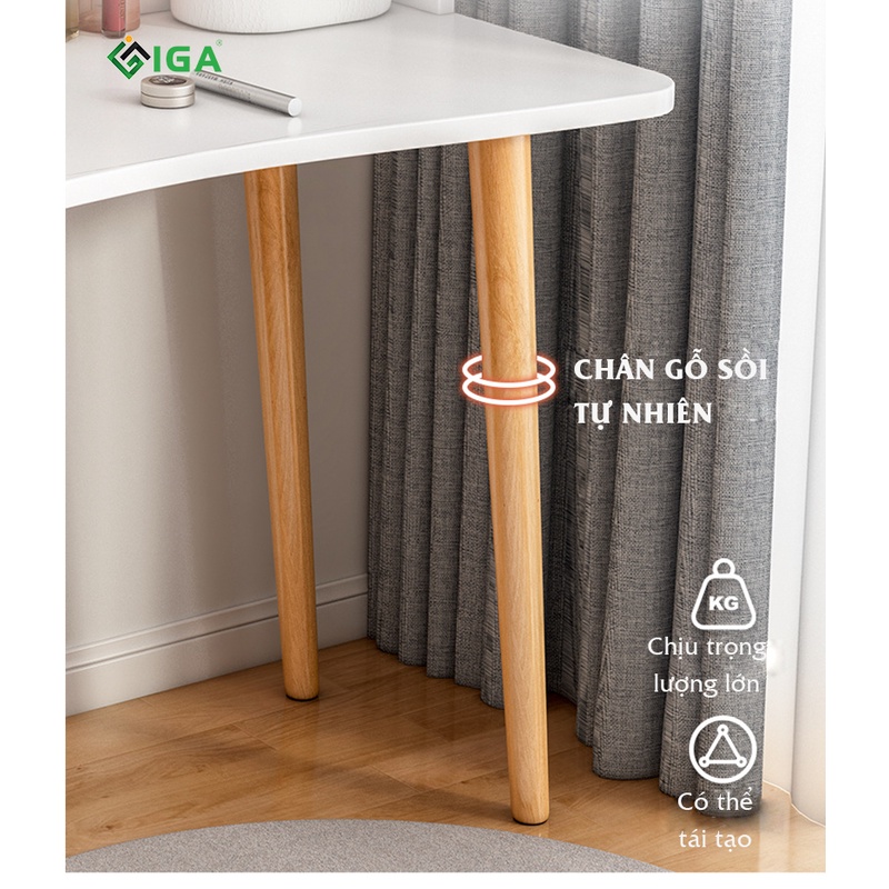 Bàn trang điềm phòng ngủ bàn trang điểm gương tròn chân gỗ sồi - GP196
