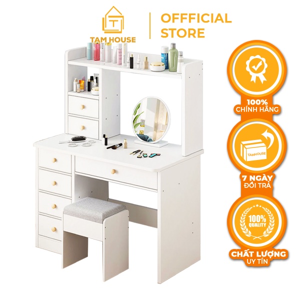 Trước hết, chi phí cho bàn trang điểm TÂM HOUSE rẻ nhưng vẫn đáp ứng tối đa nhu cầu của khách hàng và đạt được tiêu chuẩn để xuất khẩu. Bên cạnh đó, chất liệu bàn trang điểm được tuyển chọn kĩ càng, đáp ứng tiêu chí đẹp-bền-rẻ. Ngoài ra, mặt bàn trang điểm rộng rãi cho phép bạn thoải mái sử dụng những vật dụng khác; kết cấu bàn mạnh mẽ và khoa học đủ khả năng chịu lực của các vật nặng.