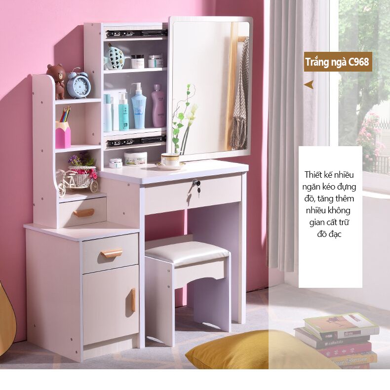 Giới thiệu Bàn trang điểm tủ lưu trữ đơn giản hiện đại sang trọng nhẹ trong phòng ngủ Bàn trang điểm kèm kệ để đồ tiện lợi