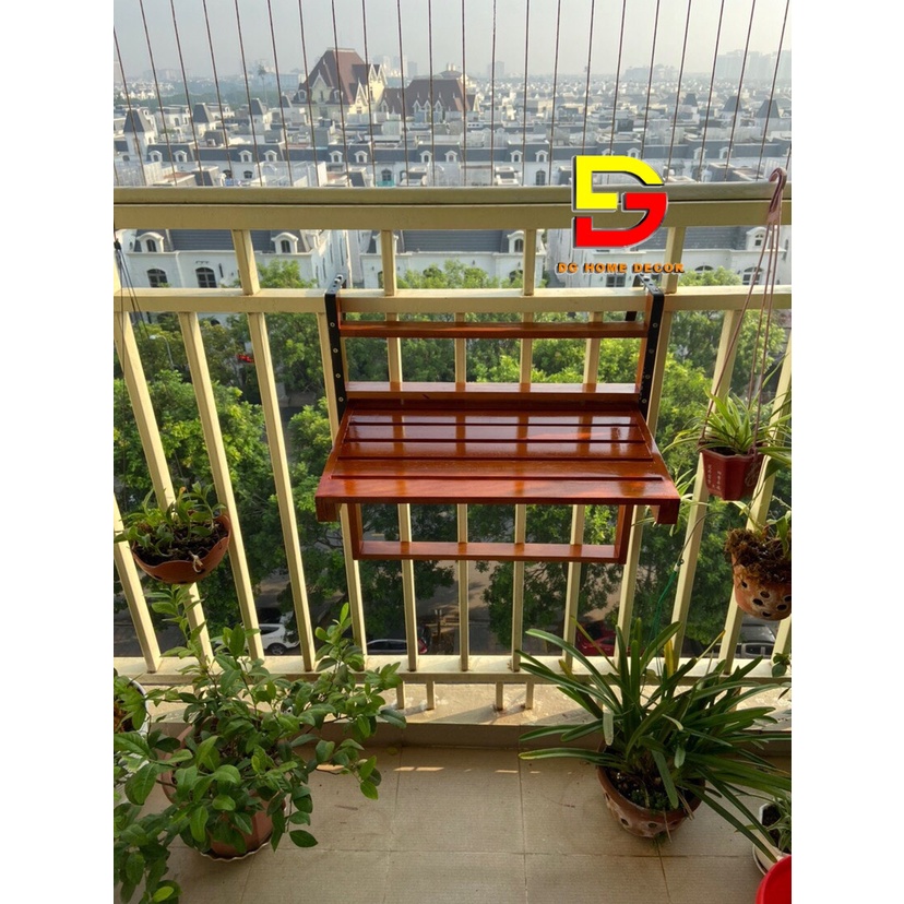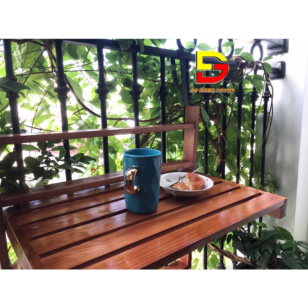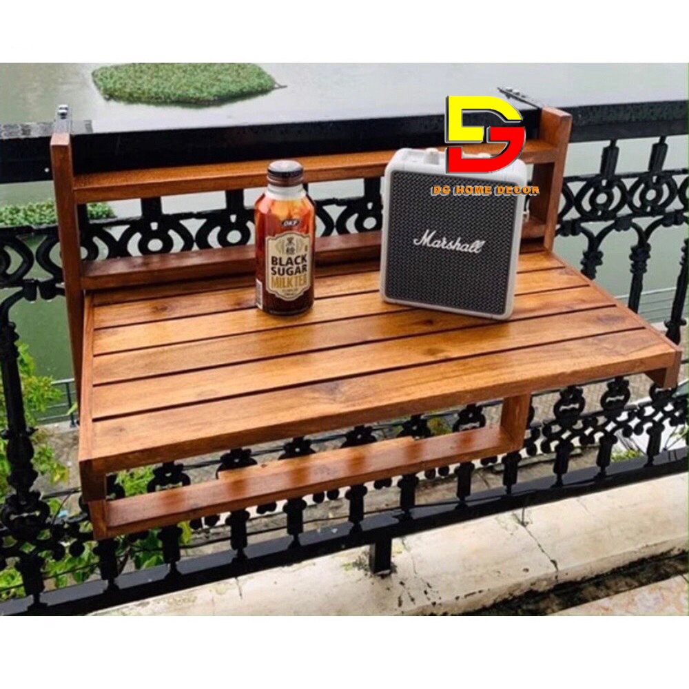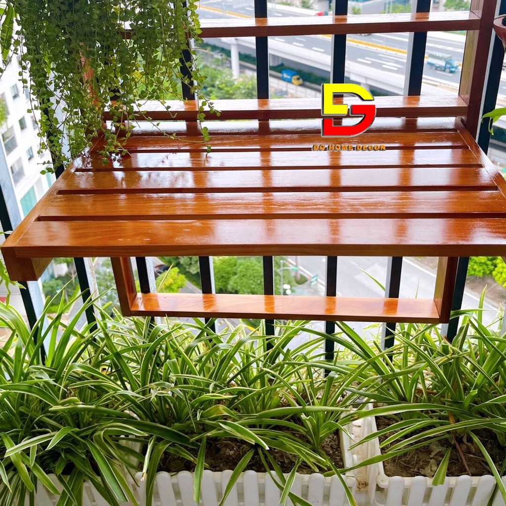 Bàn Treo Ban Công Gấp Gọn - Bàn Bar Gỗ Thông Cao Cấp Nhập Khẩu Điều Chỉnh Được Độ Cao. Bàn Ban Công được làm từ gỗ thông siêu bền, đã được xử lý chống mối mọt, chịu được các yếu tố thời tiết mưa nắng. Kích thước bàn dài x rộng = 56x35cmTHÔNG TIN SẢN PHẨM: