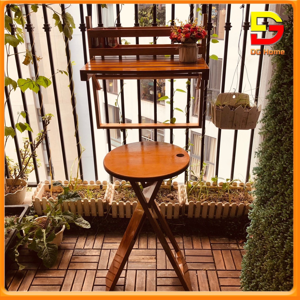 - Chất liệu: được làm từ gỗ thông đã qua xử lý kỹ lưỡng, chịu nắng mưa tốt nhất, bàn có thể gập xuống khi không sử dụng để không chiếm diện tích ban công nhà bạn.