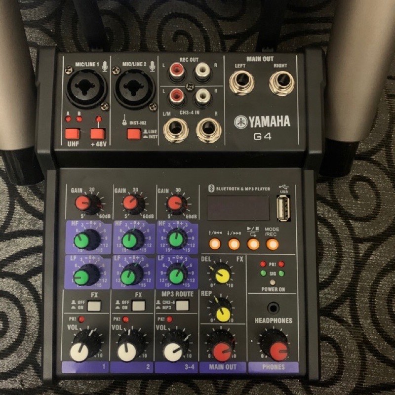 Giới thiệu Bàn trộm âm thanh hát karaoke hoặc thu âm Mixer Yamaha G4-USB BLUEOOTH KÈM 2 míc bảo hành 1 năm