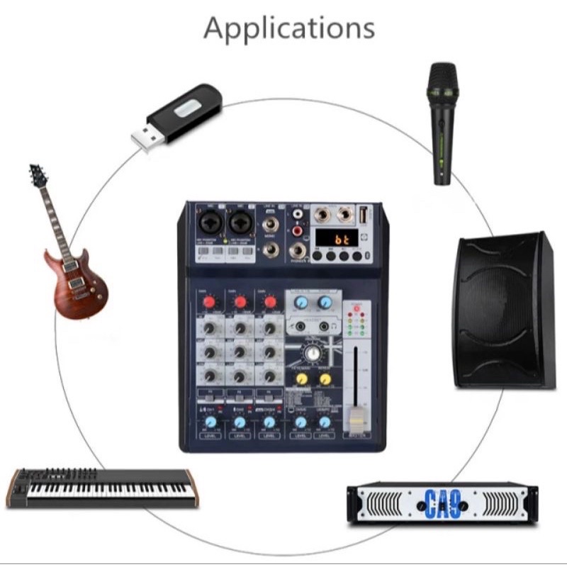 ✔ Mixer F4 Promax Sử dụng được với khát nhiều nhạc cụ như đàn ghita, piano..