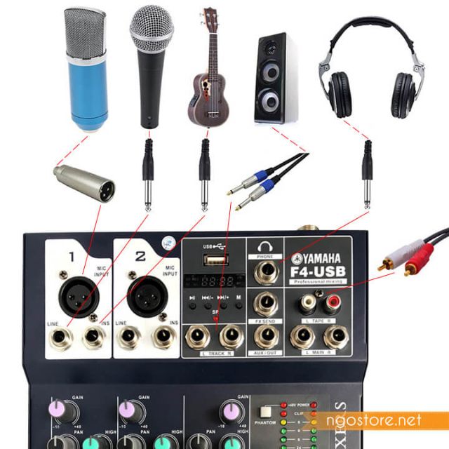 - Mixer F4-USB hỗ trợ nguồn phantom 48V
